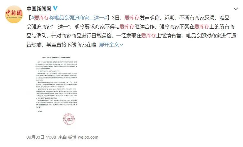 愛庫存稱唯品會強迫商家二選一