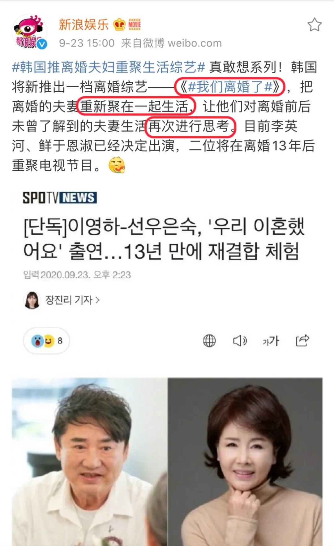 於是,離婚13年後,已經70歲的李英河和62歲的鮮于銀淑決定出演這檔節目,親自尋找這個問題的答案。