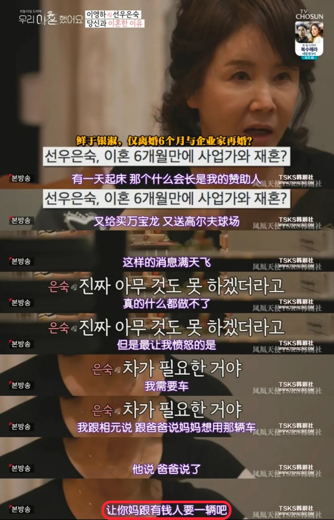 於是,還沒從離婚的陰影中走出來的鮮于銀淑,被這句話徹底判了死刑。
