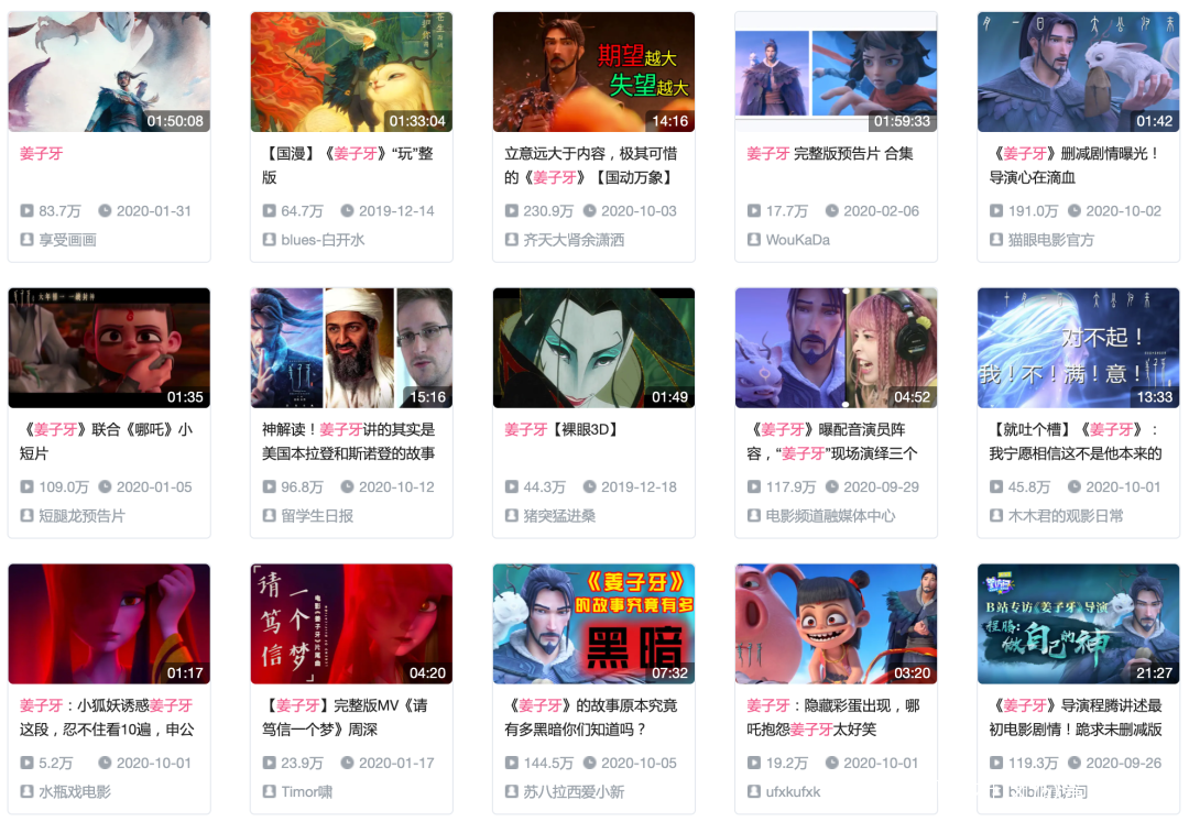 B站《姜子牙》相關二創視頻