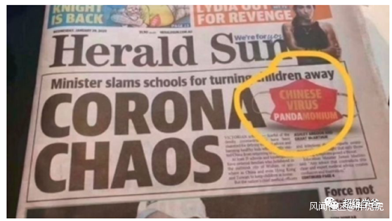 疫情在中國爆發之後,澳大利亞跟吃了興奮劑一樣看中國笑話,同時用病毒污名化中國。1月29日,澳大利亞的《太陽先驅報》在封面上將此次新冠肺炎病毒命名為“中國肺炎”。