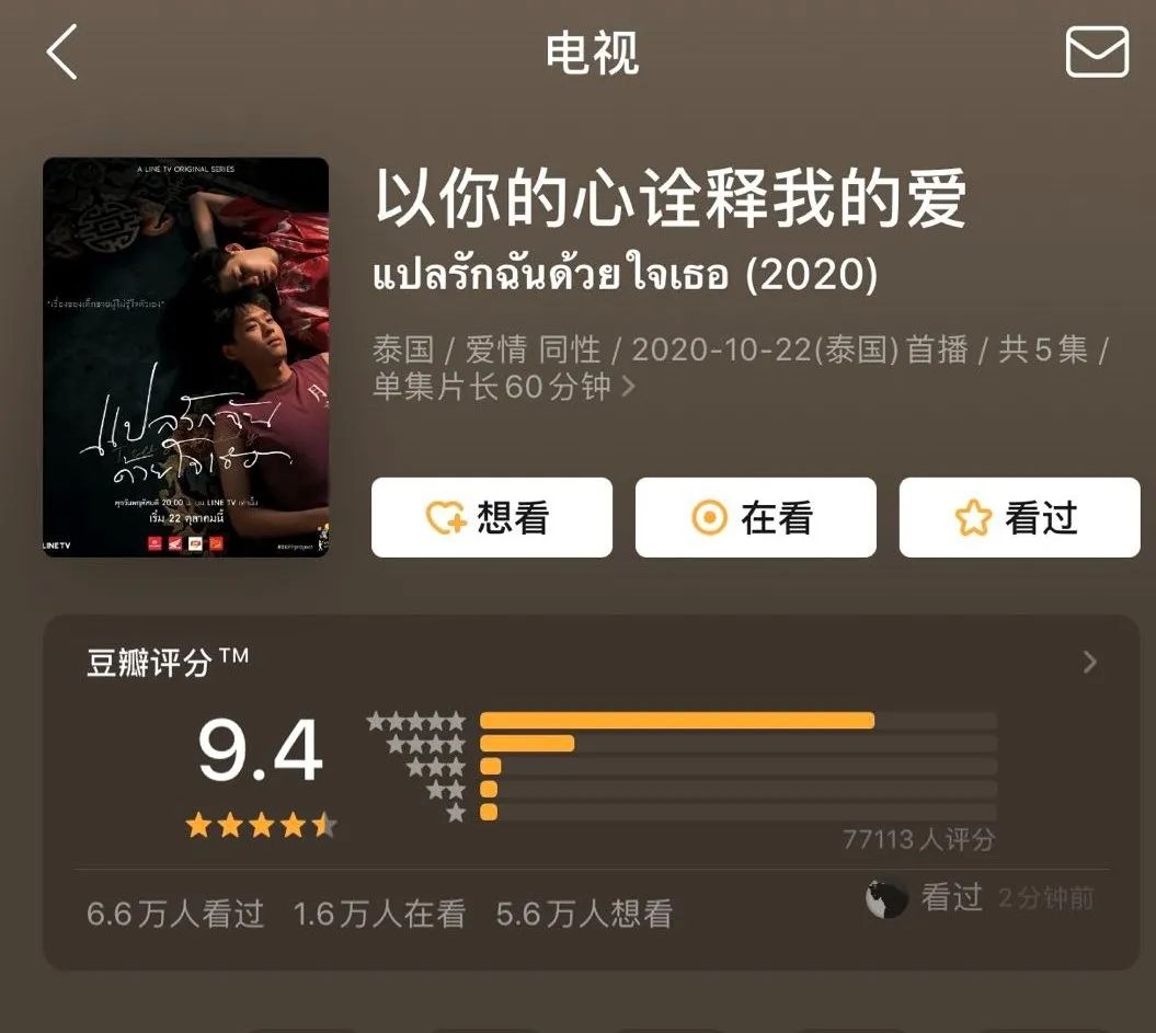 泰劇《以你的心詮釋我的愛》在國內火了一把,空降豆瓣評分9.4。