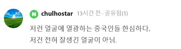 “對!這不過就是鄉村水準,在整個韓國都很普遍。 看來中國沒什麼男人了,這種程度都能火。 如果我國的元彬去中國,所有的中國人民都會昏倒,被帥死~”