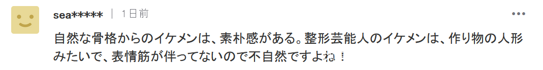 “這是自然的帥哥,給人一種樸素之感。那些整出來的帥哥就像人偶。”