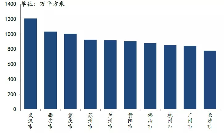 圖:2020年1-11月50家代表房企拿地面積TOP10城市
