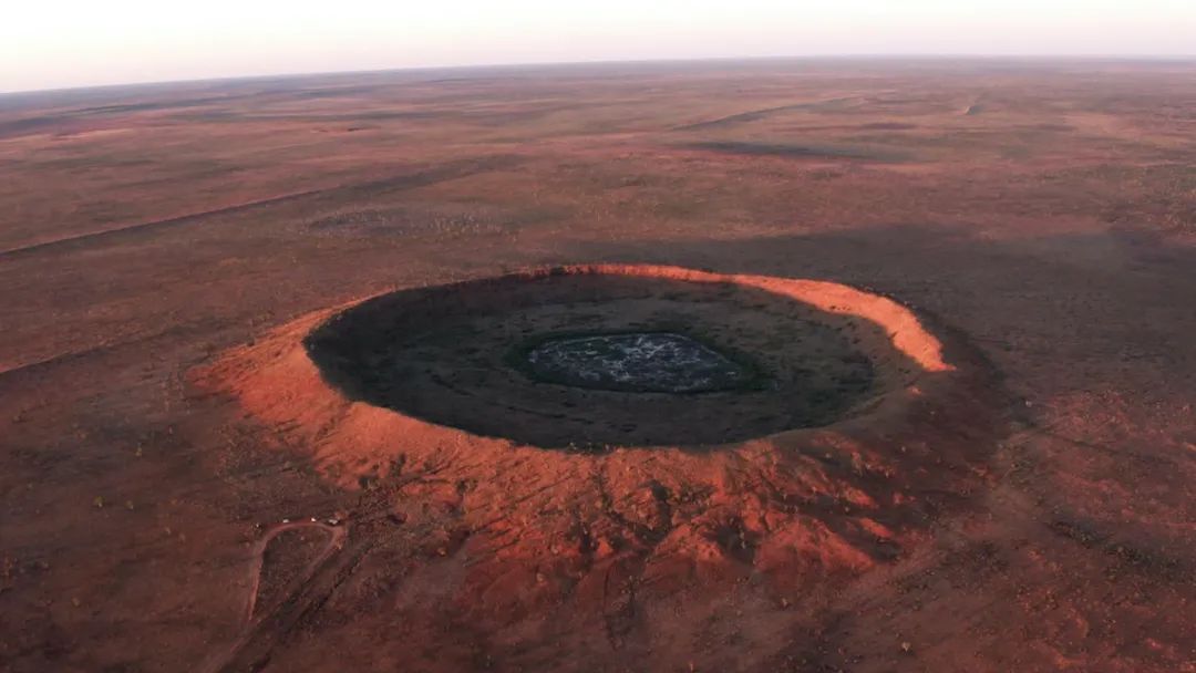 無垠的沙漠裏,一個巨大的深坑兀自矗立,這是沉睡了30萬年的地質奇觀——沃爾夫溪隕石坑。