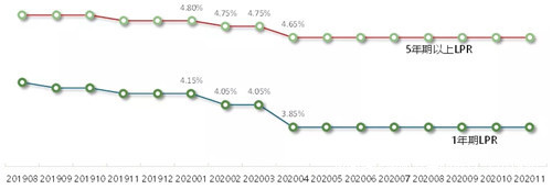 圖:2019年8月以來1年期和5年期以上LPR走勢
