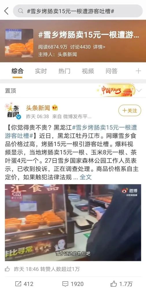 耗子尾汁,不講武德,雪鄉15元一根的烤腸被人舉報了_風聞