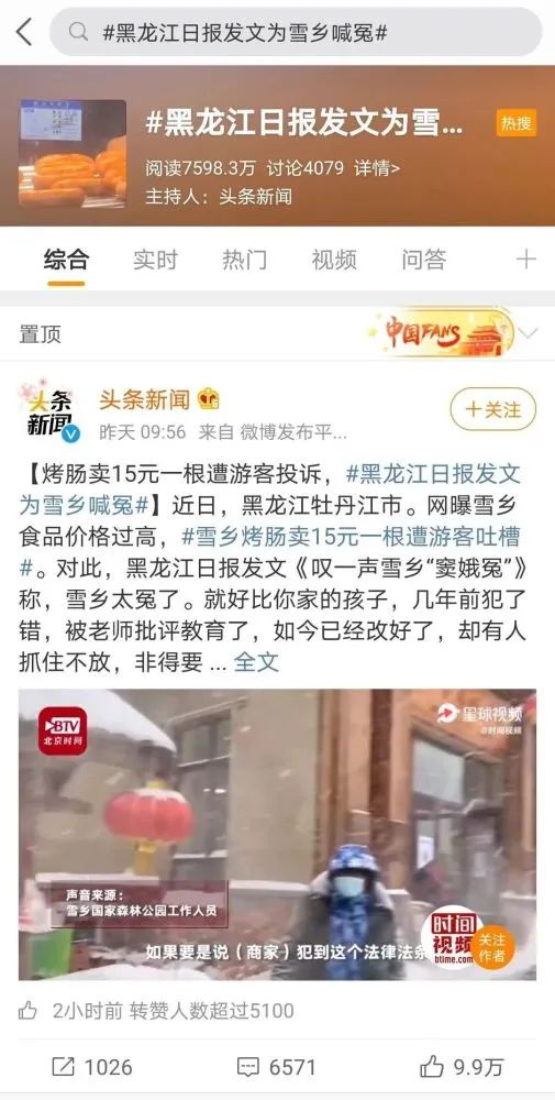 可黑龍江日報太實在了,出場先把雪鄉描述成個犯錯誤的熊孩子。這等於抽冷子給了雪鄉一拳,這還公個毛關?