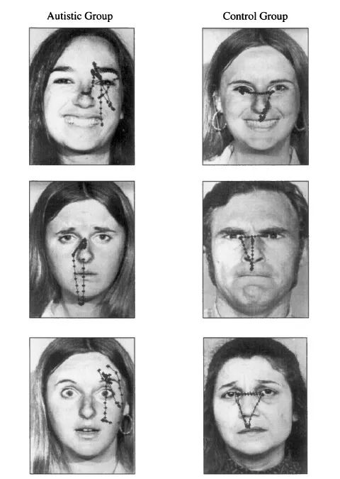 我們最早的一個研究,是讓孤獨症的孩子去看人的面孔,然後記錄下他眼動的圖像。我們就發現,不管是跟正常人,還是跟智力有缺陷的人相比,孤獨症孩子的一個特點就是對眼睛的關注更少,在眼部注視方面有異常。