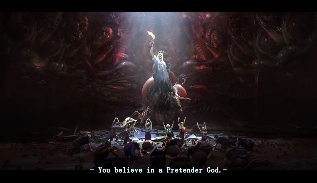 疫情期間,他創作了《為弄臣加冕》送給這位“中國最有影響力的作家”:一個短髮女人向美國人跪着獻上Lie Diary(謊言日記)一書。
