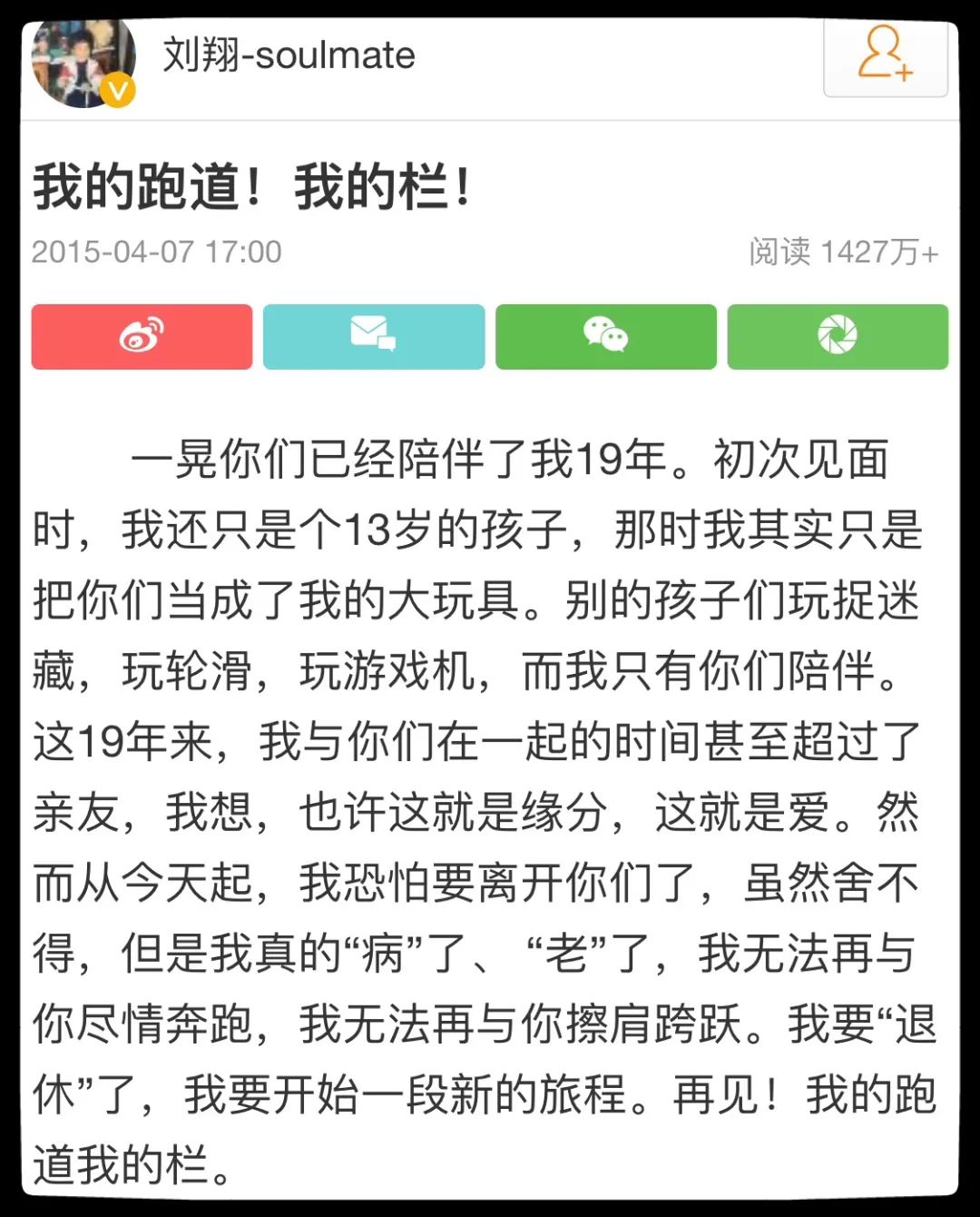 2015年5月份,劉翔退役儀式舉辦,父母恩師均未站在身邊。