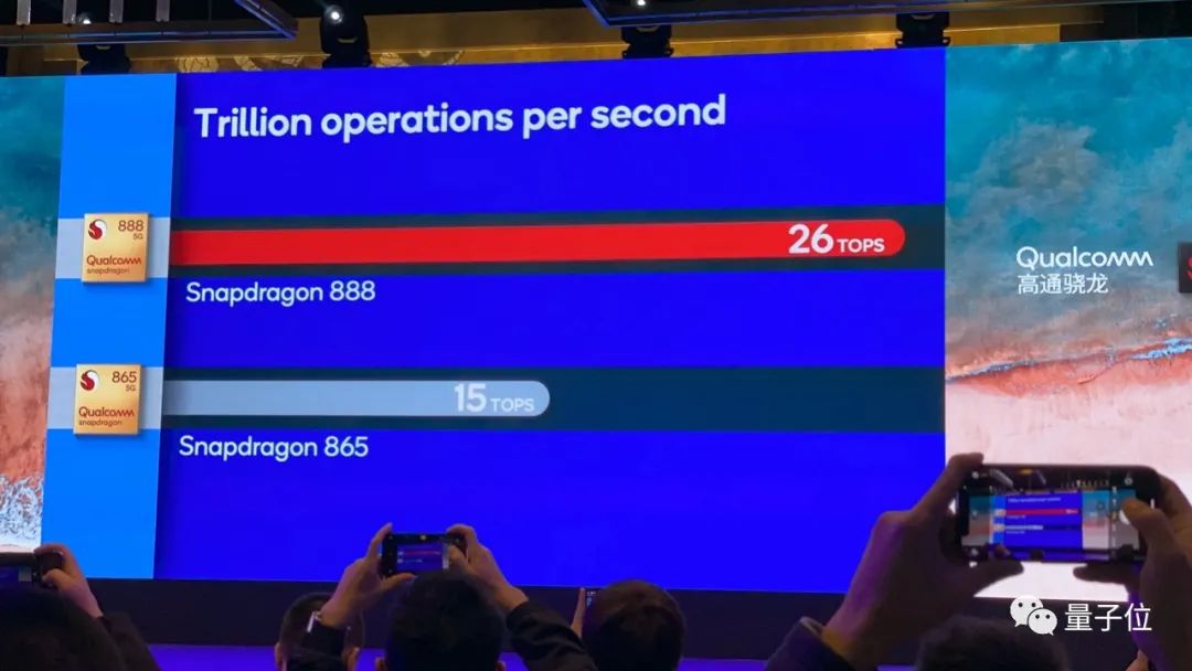 最後整體上,驍龍888實現了每秒26萬億次運算,上一代驍龍865只有15TOPS。