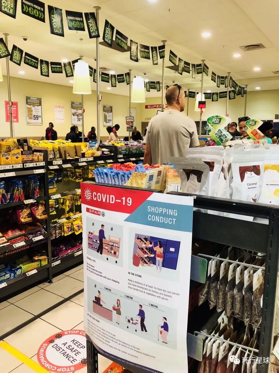 超市裏提醒大家注意防護的宣傳海報。