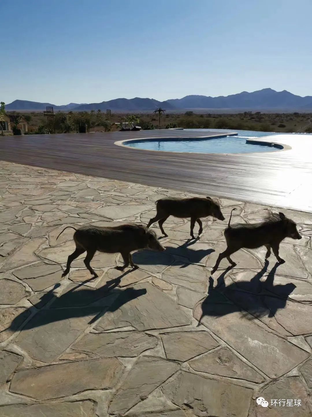 位於紅沙漠的Agama酒店,由於疫情封鎖少了遊客,來自山腳的“彭彭”一家很快就將這處新建成沒多久的酒店當自家地盤了,飯點兒還會主動到廚房取餐,無邊泳池就是一家豬的飲水池毫不客氣。