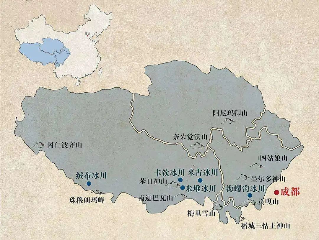 藏區主要雪山、冰川分佈示意圖 繪圖/蔡惟