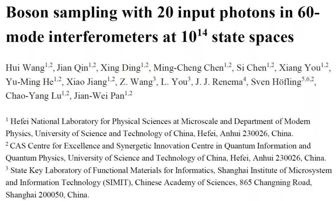 2019年潘建偉和陸朝陽等人關於用玻色子取樣尋求實現量子霸權的文章