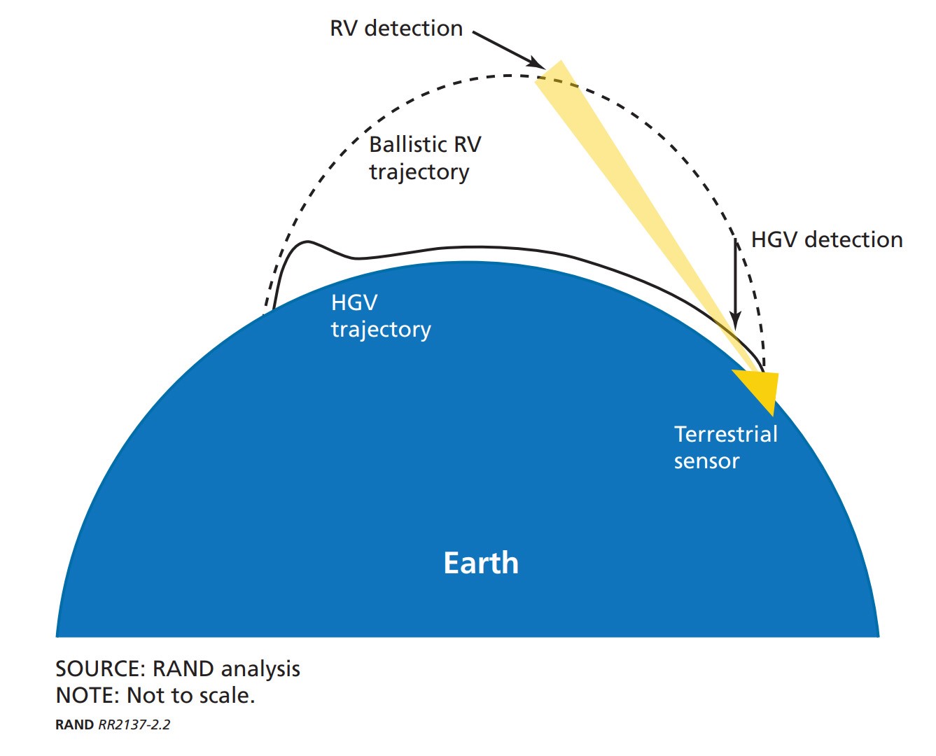 導彈防禦的第一環是預警,傳統上這主要由紅外預警衞星構成,從空間凝視地面,在第一時間捕捉導彈發射時尾焰的強大紅外特徵,並根據初始彈道推算全彈道和命中點(對機動再入彈頭則是命中區域),同時啓動攔截準備。在導彈進入地基或者海基的雷達或者紅外的視界之後,精確測定實際彈道並校正先前的彈道計算,然後才談得上下令發射和實際攔截。但HGV使得彈道計算和以此為基礎的中段攔截變得徒勞。