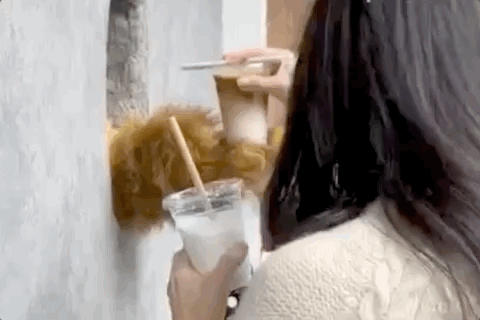 上海永康路上,一個只有一面水泥牆的門店格外引人注意:牆上鑿個洞,洞中伸出一隻熊掌,遞出顧客剛下完單的咖啡。
