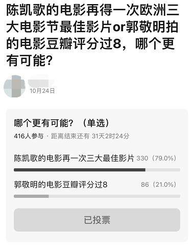 甚至有人在豆瓣上開帖下注,問到底是陳凱歌再拍一部拿到歐洲三大最佳的電影更難,還是郭敬明拍出一部豆瓣評分過8的電影更難?