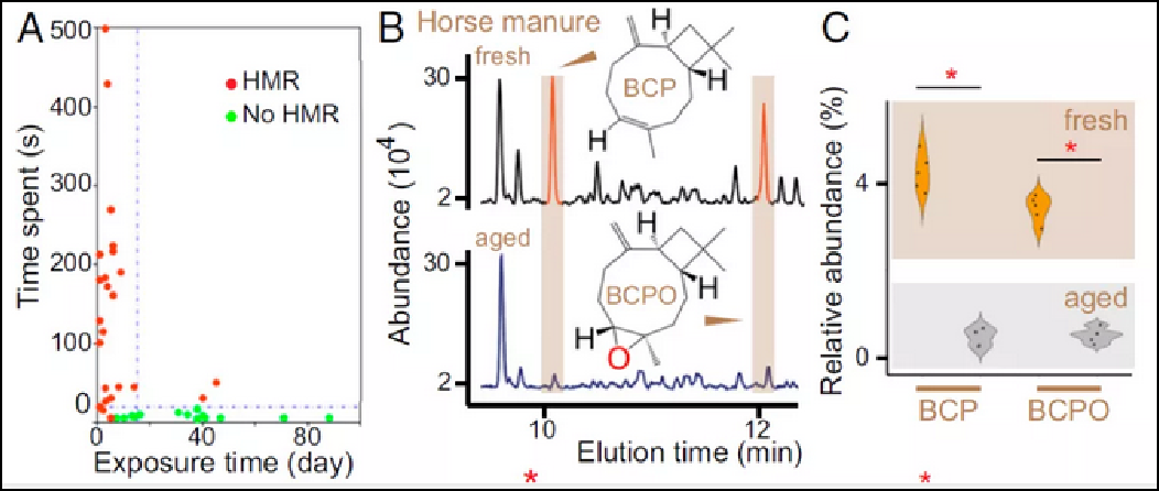 研究人員,在馬糞中分離出了兩種化學物質,BCP(β-石竹烯)和BCPO(石竹烯氧化物)。