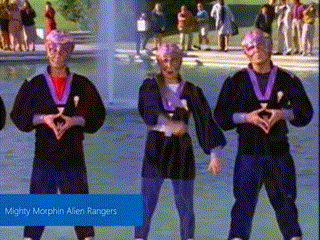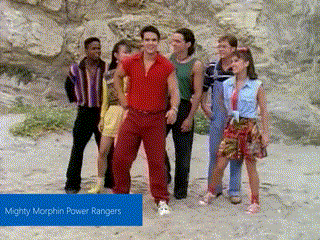傑森、比利、扎克、特里尼、金伯利五人使用恐龍手盾與恐龍變身硬幣變身成為第一代超凡戰隊——恐龍戰隊!