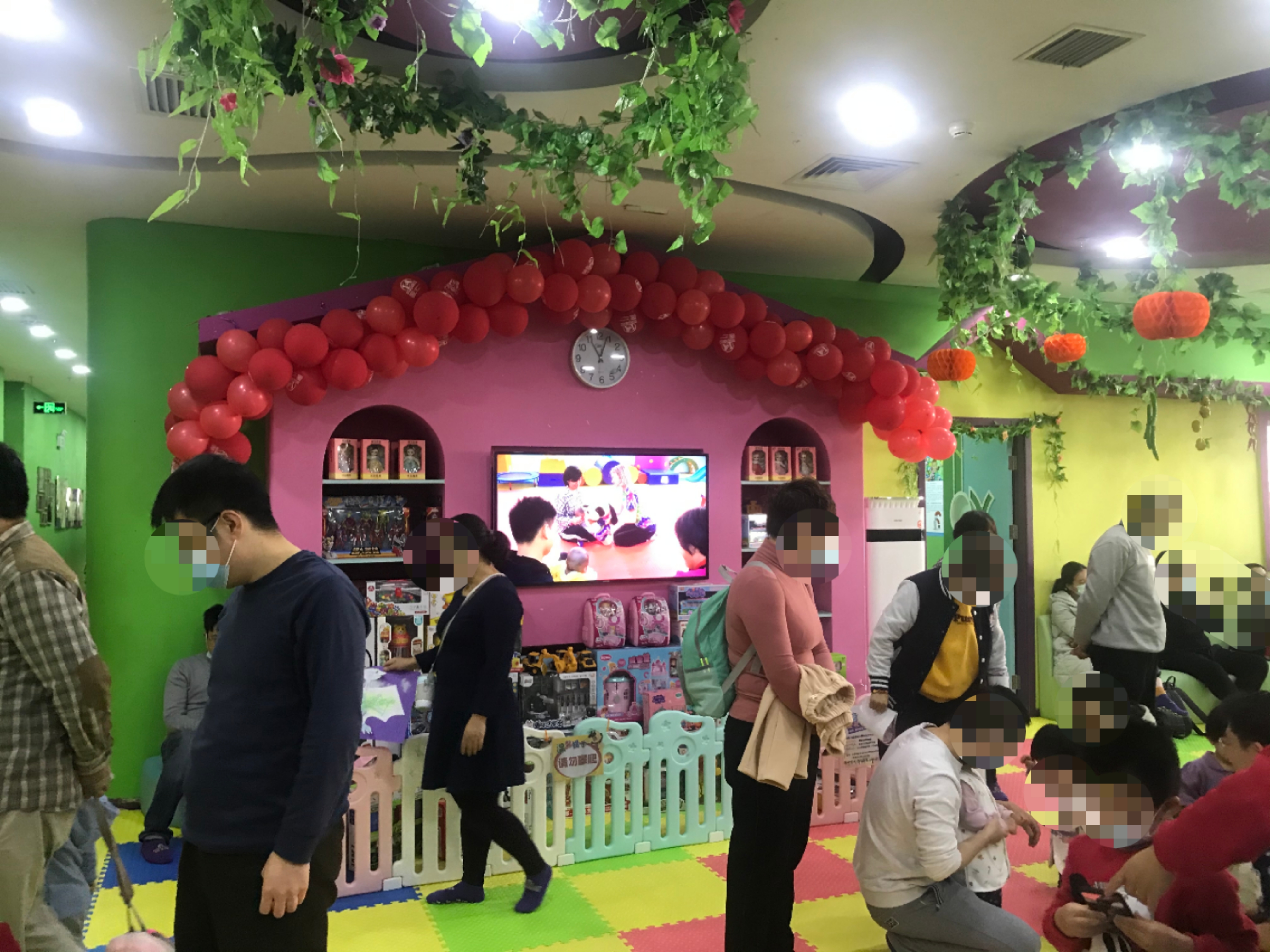 柒財經觀察到,無論是在教室裏陪孩子上課的家長,還是課堂外陪孩子玩遊戲、穿梭在大堂的家長,並非全部都戴了口罩。而該早教機構當時也未就此對這些家長提出要求。