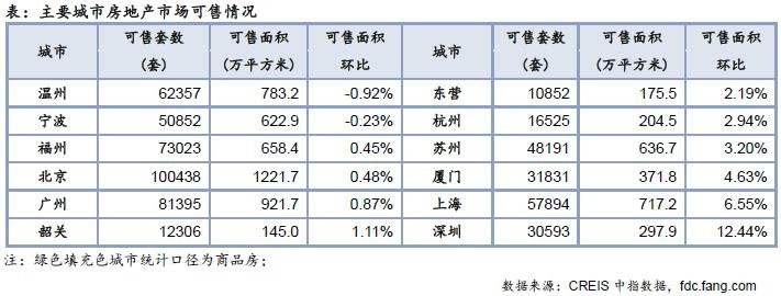 截至12月6日,中指監測的12個主要城市庫存總量環比上升2.0%。上週監測城市中,深圳升幅較高,為12.44%;上海次之,升幅為6.55%;廣州、北京和福州升幅均在1%以內。監測城市中,温州庫存總量環比降幅較大,為0.92%。