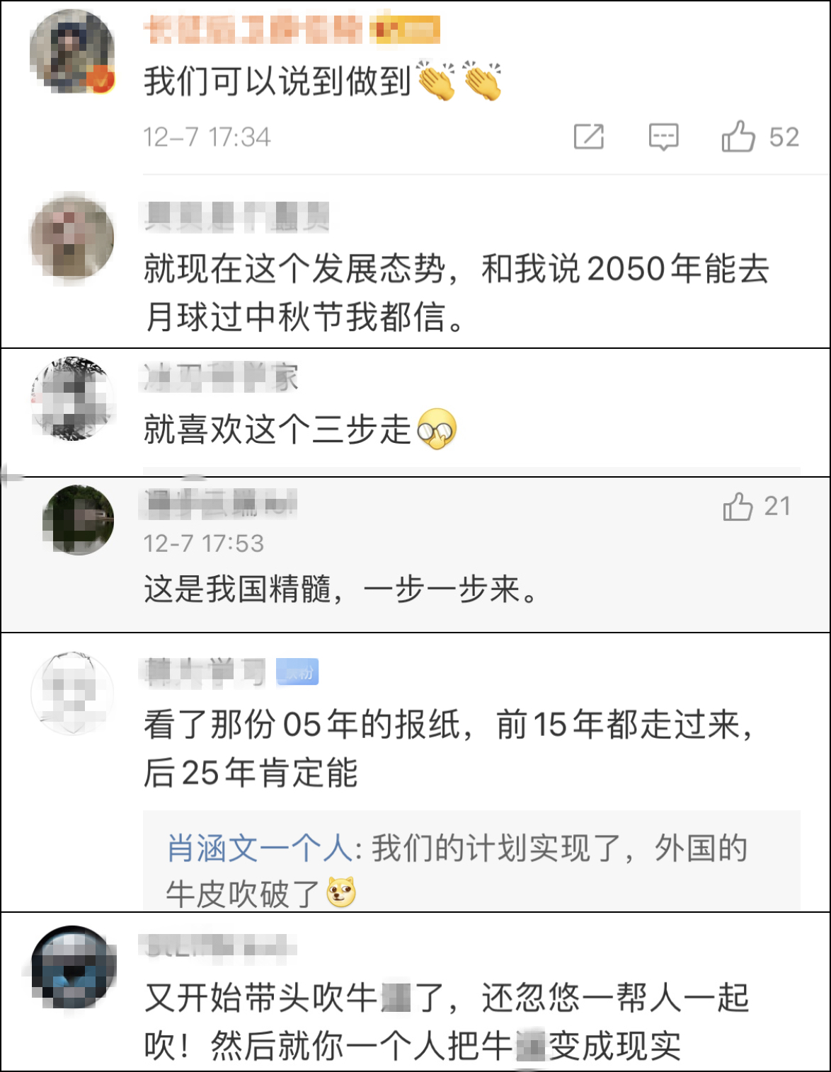 網友:雖然聽起來很“囂張”,但鑑於探月計劃圓滿完成,現在你説啥我都信。