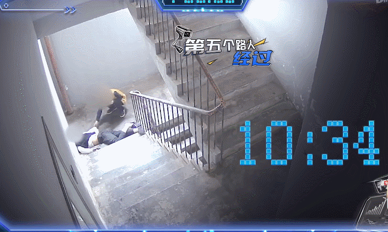 原來同伴離開後,男孩走進了樓梯間卻不慎失足摔下了樓梯,但此時男孩的肚皮仍然在起伏,還有生命體徵。