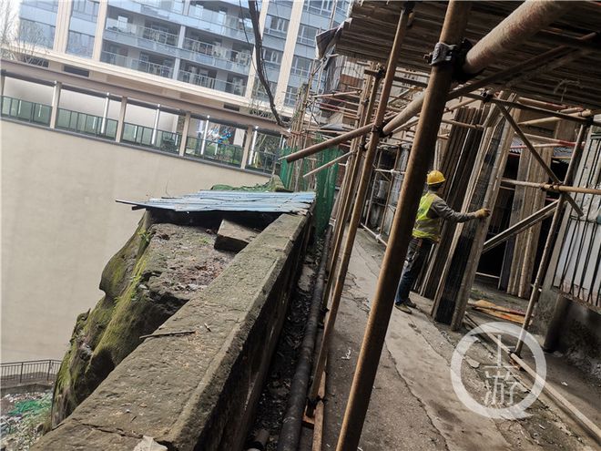 為了避免施工過程中損傷到石像,施工方給石像頂部加蓋了擋板