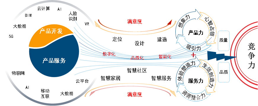 未來五年,我國房地產行業降速提質,但房地產市場仍有較大規模支撐,企業聚焦、做強主業仍是未來發展的着力點。隨着房地產存量市場規模的不斷增大,房地產服務價值凸顯,疫情爆發後地產服務價值又得到進一步深化,疊加大數據、人工智能等數字技術的快速發展和應用,未來地產數字化和智能化趨勢將更加明顯。企業藉助數字化技術和工具推動產品、服務的智能化,能夠有效提升產品品質和運作效率,強化核心競爭優勢,全面賦能企業發展。