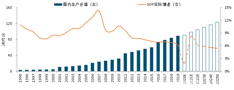 面對當今世界正經歷的百年未有之大變局,“十四五”時期,我國加快構建以國內大循環為主體、國內國際雙循環相互促進的新發展格局,引領帶動國內產業升級,提升要素市場的內外聯通效率。為支持實體經濟發展,中央將繼續保持貨幣的結構性寬鬆,政策會更加註重在穩增長、調結構、防風險、控通脹之間把握綜合平衡,M2有望保持在高速增長區間,我國經濟向更高質量方向發展,預計未來五年GDP將保持中速增長,對房地產市場規模形成有力支撐。