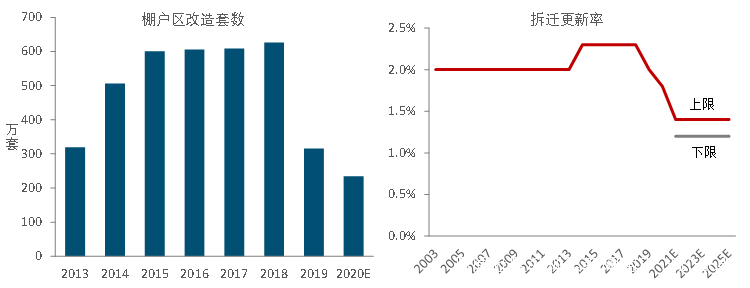 圖:我國過去幾年棚户區改造規模及拆遷更新率測算