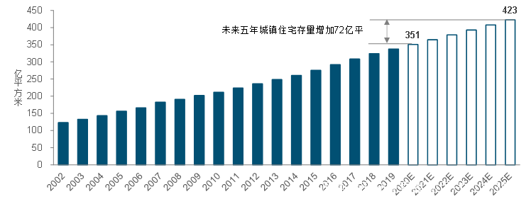 綜合來説,基於上述對2021-2025年城鎮居民人均住房面積年均提升0.8平方米至44.5平方米的預判,預計未來五年改善型住房需求共35.7億平方米,是商品化住房需求的關鍵支撐。