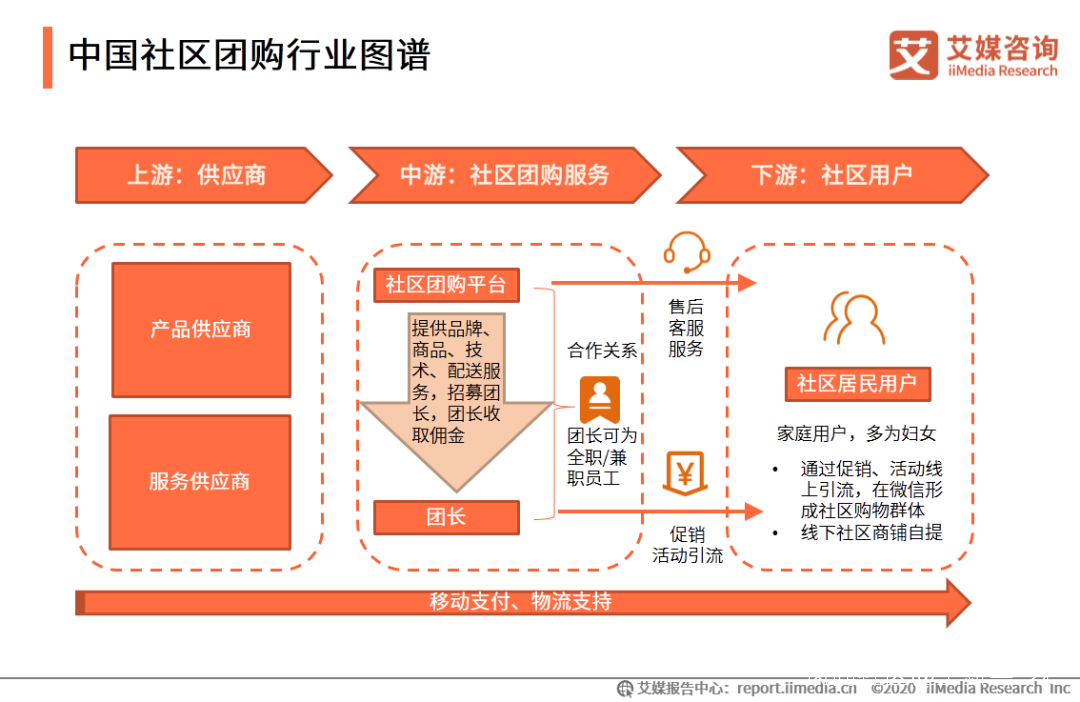 這個供應鏈相當於通過佈局一個個物流節點,形成 “共享倉——中心倉——服務站/網格站——門店/自提點”的供應鏈,最後一層是團長。目前一人兼職多家平台團長很常見,多家社區團購也都推出自己獨立小程序甚至APP,即便沒有團長,消費者也完全可以完成交易閉環。