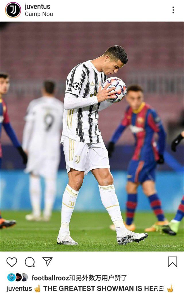 賽後,尤文圖斯官方在社交媒體發聲:“最偉大的球員在這裏。”