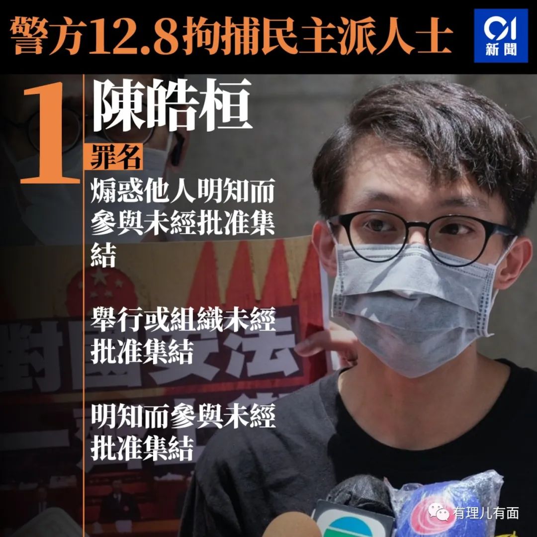 12月8日,港警再次行動,一舉抓捕了亂港組織“民間人權陣線(民陣)”召集人、“社會民主連線(社民連)”行委陳浩恆,“社民連”副主席梁國雄(長毛),“社民連”成員、區議員曾建成(阿牛),“社民連”紀委鄧世禮,前立法會議員、前民主黨主席胡志偉,前立法會議員朱凱迪,區議員、“柴灣起動”召集人徐子見以及區議員、“柴灣起動”成員陳榮泰等8人。