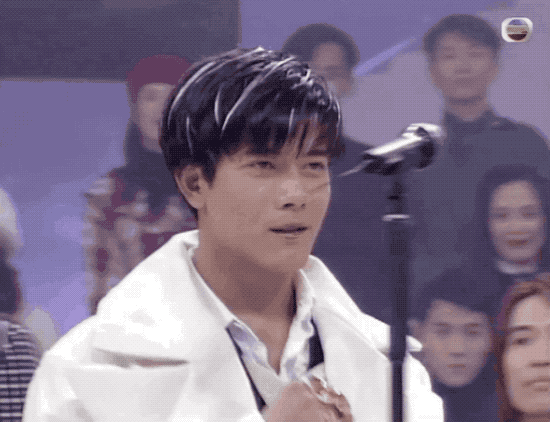 我自己剛剛入行的時候呢,經歷了一件令我很心寒的事,我記得在一個頒獎典禮上,我見到阿倫(譚詠麟)同Leslie(張國榮)的歌迷就在一個場上爭吵,在罵啊,到今時今日,8年之後,到今天我們4個可以站在台上,我希望,希望大家不要再有同一樣的事情發生。