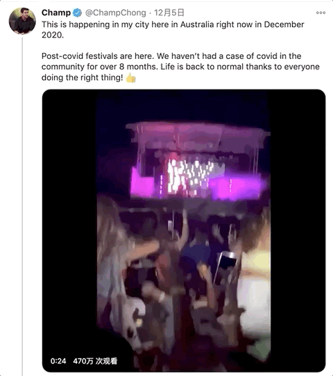 上週末,一段澳大利亞珀斯市舉行新冠疫情後節慶活動的視頻引發熱議: