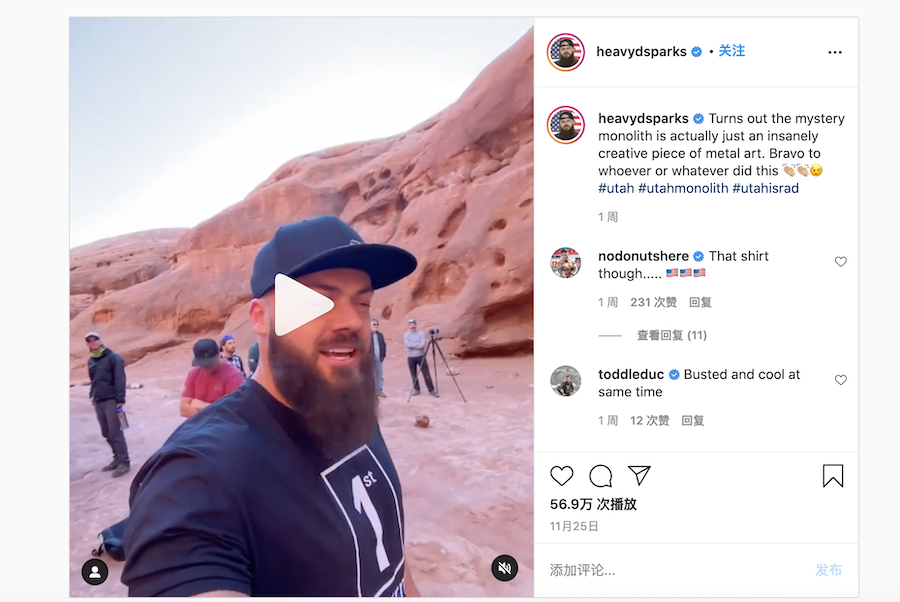 有的是徒步旅行的愛好者,有的是電影《2001:太空漫遊》的狂熱粉絲,還有為了積攢流量和粉絲的YouTube“up主”,大家紛紛前往猶他州沙漠尋找“巨石”。
