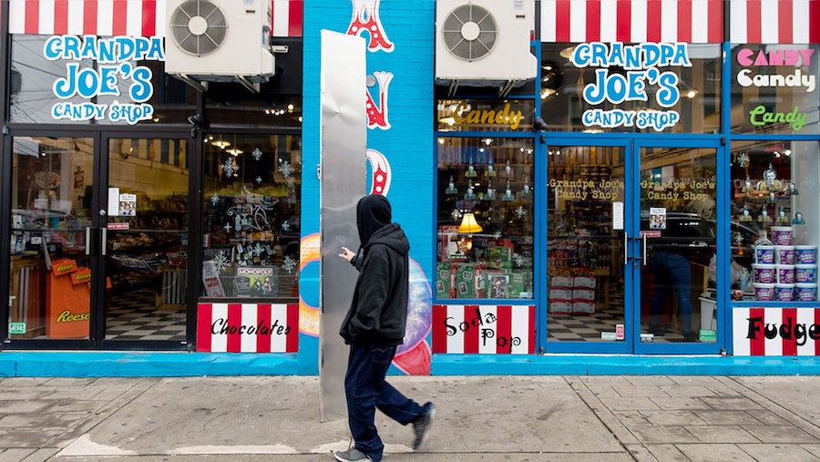 在美國,一家糖果店老闆也從猶他州“神秘巨石”中受到啓發,在店門口立上“巨石”招攬生意。 資料圖