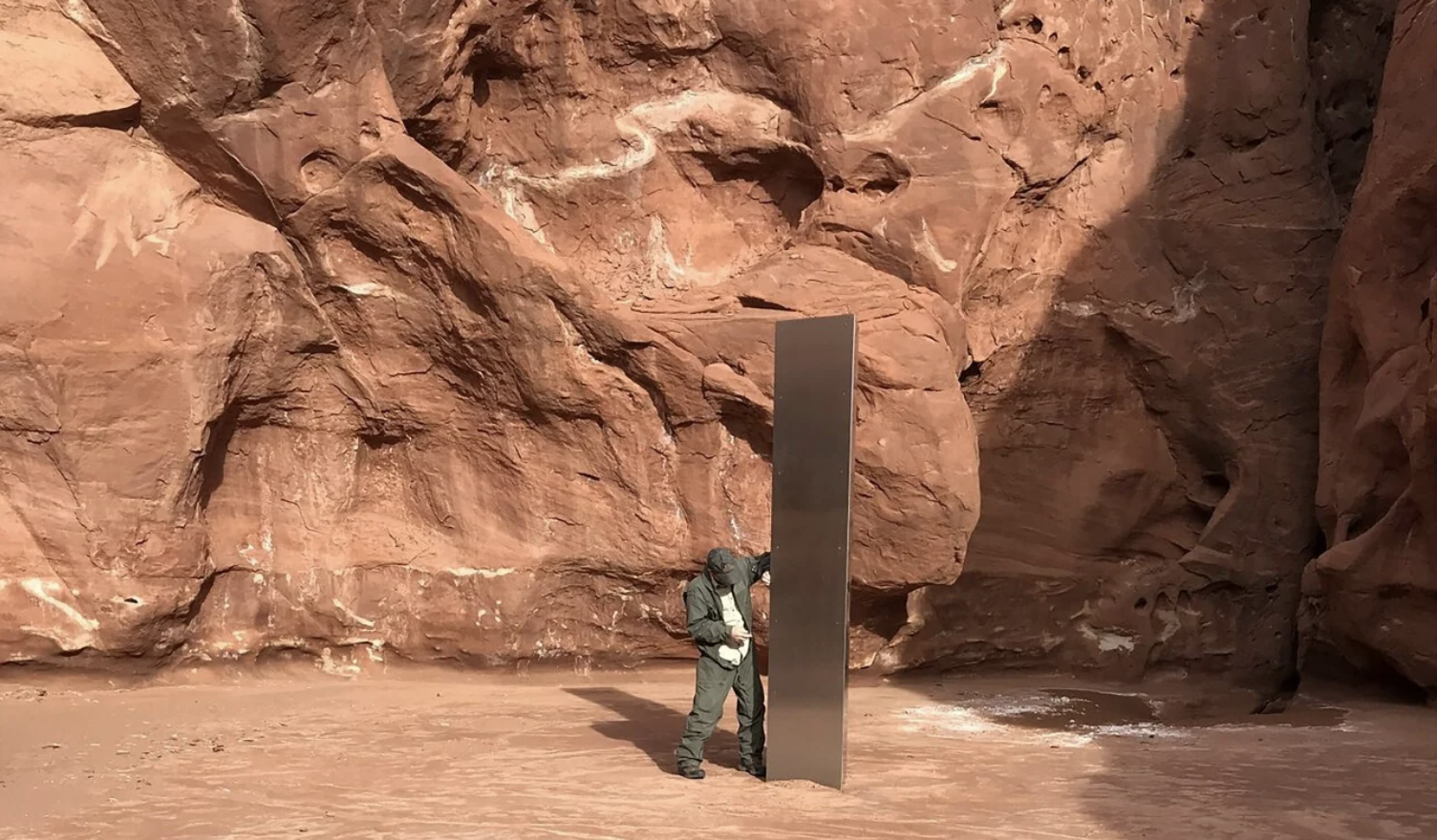 如果你看過科幻電影《2001太空漫遊》,一定記得影片開頭猿人在觸摸了神秘黑色巨石後忽然獲得了智慧,開始學會使用工具,用武器獵殺其他動物的經典橋段。不久前,猶他州公共安全部的官員們真的在該州的郊外發現了一塊神秘的“巨石”。