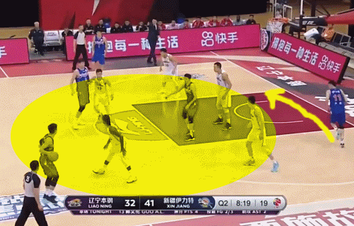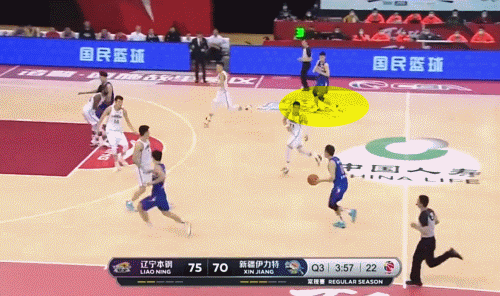 新疆隊並非被動地擺脱聯防,在第三節,他們一度嘗試加快攻守轉換的節奏,避免過多地與遼寧隊糾纏陣地。在這個過程中,新疆隊執行了兩點:第一,如果第一快攻點不能得分,第一時間轉移球;第二,齊麟快出手。