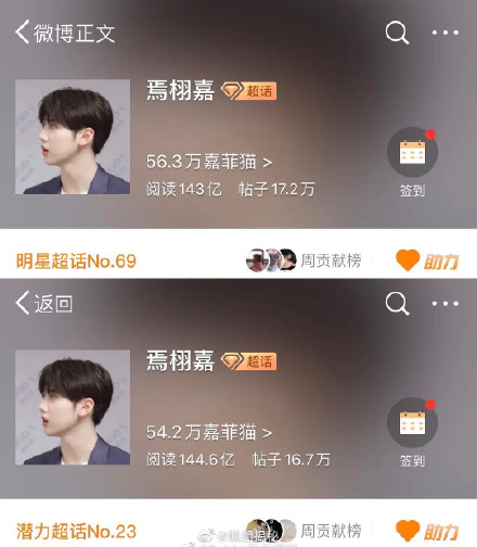 焉栩嘉正在成為R1SE團內脱粉最為嚴重的一位: 12月5日爆料當天其超話粉絲56.3萬,截至昨日粉絲數為54.2萬,脱粉2.1萬,焉栩嘉也直接掉出明星榜,落到了潛力榜單中;同時微博上站姐等釋出了大量未經修圖的圖片、各種脱粉回踩的小視頻不計其數。