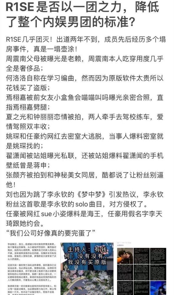 男團R1SE的灰色2020,讓市場不得不開始正式關於偶像選秀的“後市場”階段。 從《偶像練習生》掀起偶像選秀熱潮至今,雖然回鍋肉有之、爭議有之,但不可否認仍然為市場輸送了大量的年輕偶像,只是隨之而來還有各種人設崩塌、以及各種原因下的形象崩壞。