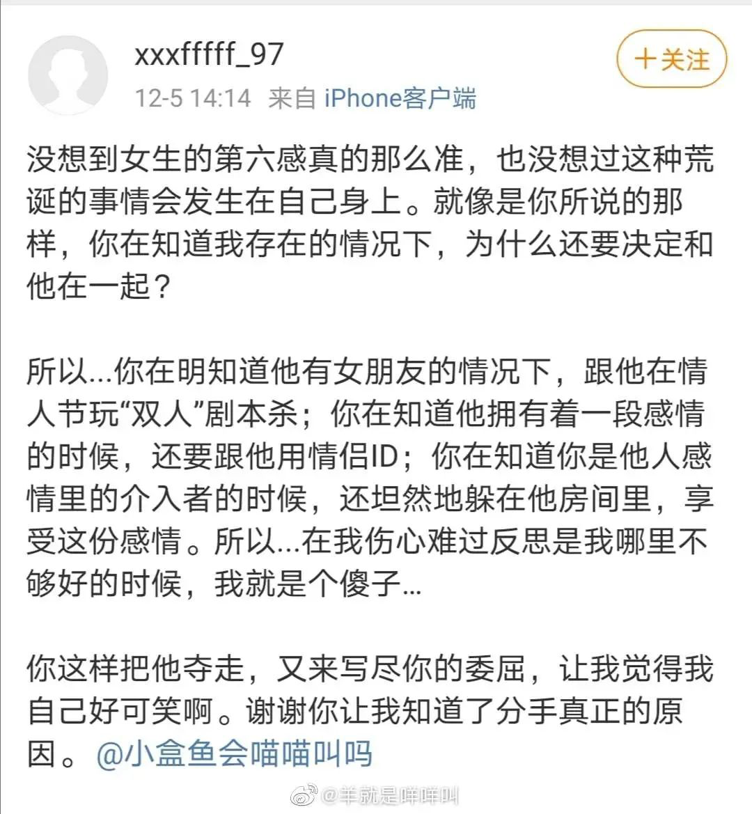 只是這樣的“乖小孩”人設,也讓他在被爆料劈腿、冷暴力、渣男時,面臨着更加嚴重的人設危機和脱粉危機。——早在12月5日微博名為“小盒魚會喵喵叫”的網友發文控訴、以及“xxxfffff-97”(後被發現為演員潘成然)認領了“正牌女友”掀起輿論混戰的當晚,焉栩嘉全球後援會和數據站就宣佈暫停應援和數據維護。