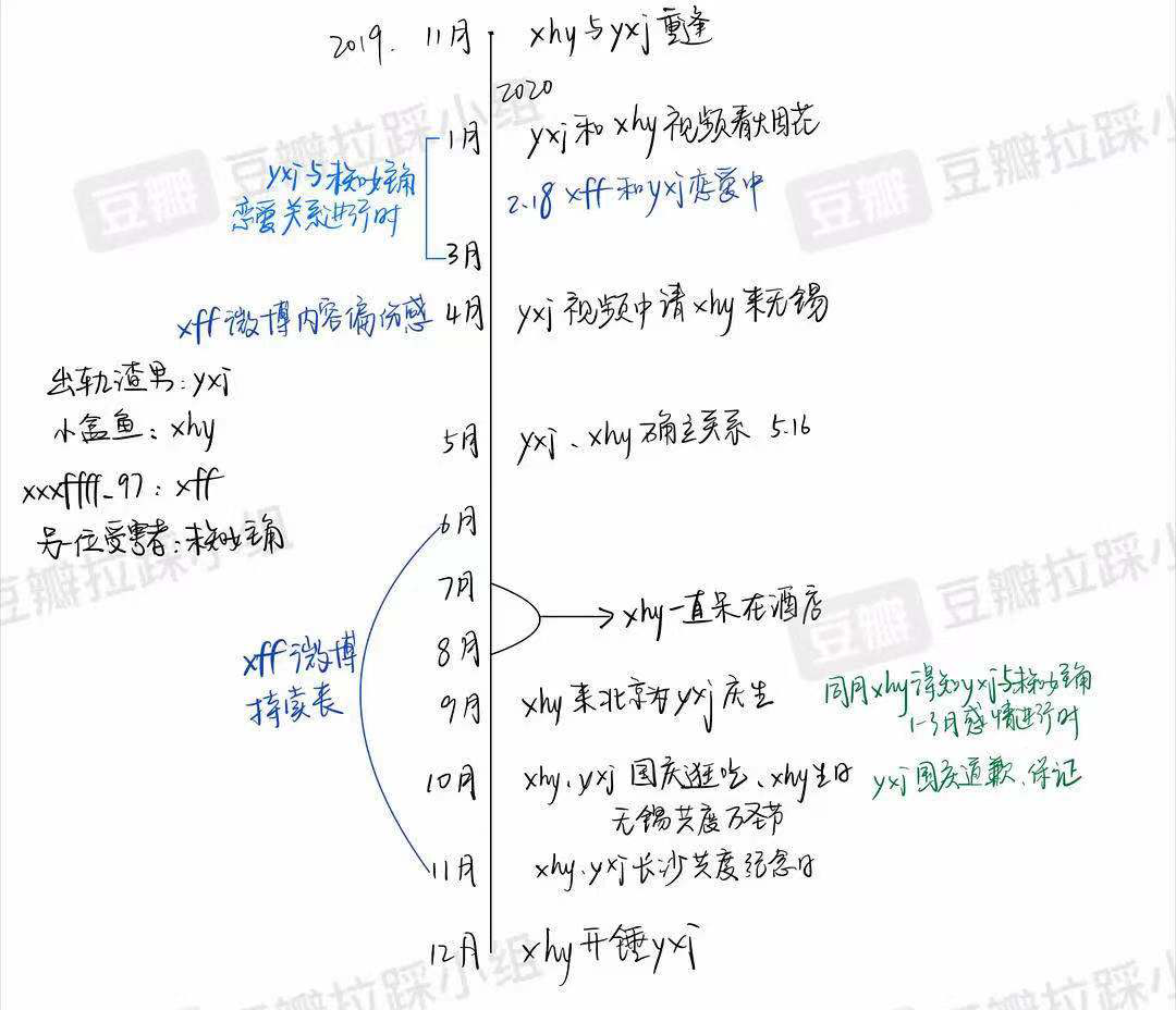 再加上編劇李正虎爆料的99級小姐姐,有網友根據這些信息整理了時間表出來,力證焉栩嘉在疫情期間至少與三位女性相交甚密,而這一時期他還在備戰高考。與此同時,網絡上廣泛流傳的還有一則哇唧唧哇員工爆料的內部開會內容,焉栩嘉向公司報備了“四個”交往對象。