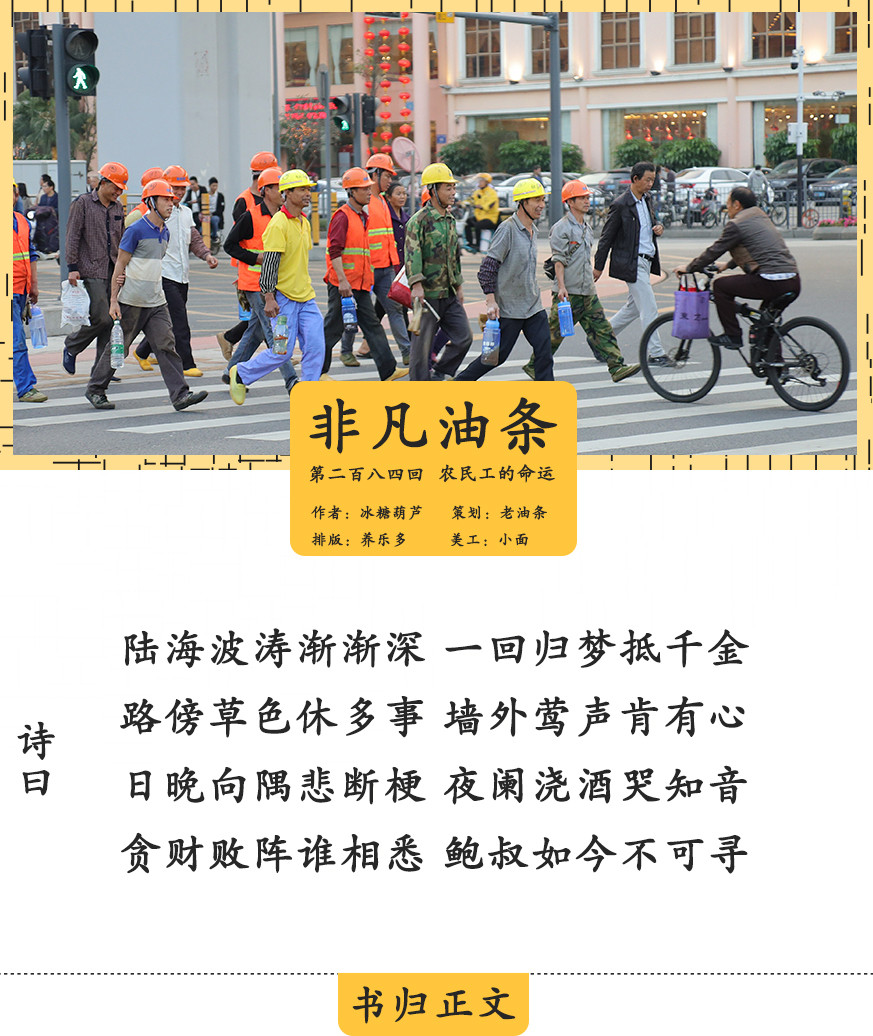 但真相往往事與願違,信了大城市鬼話的青年農民工們,最終會知道心口上狠狠地戳好幾下是什麼感覺。