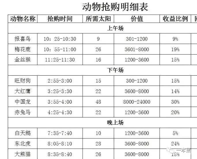 在系統中,不同時間段會放出不同的動物,以供大家搶購。